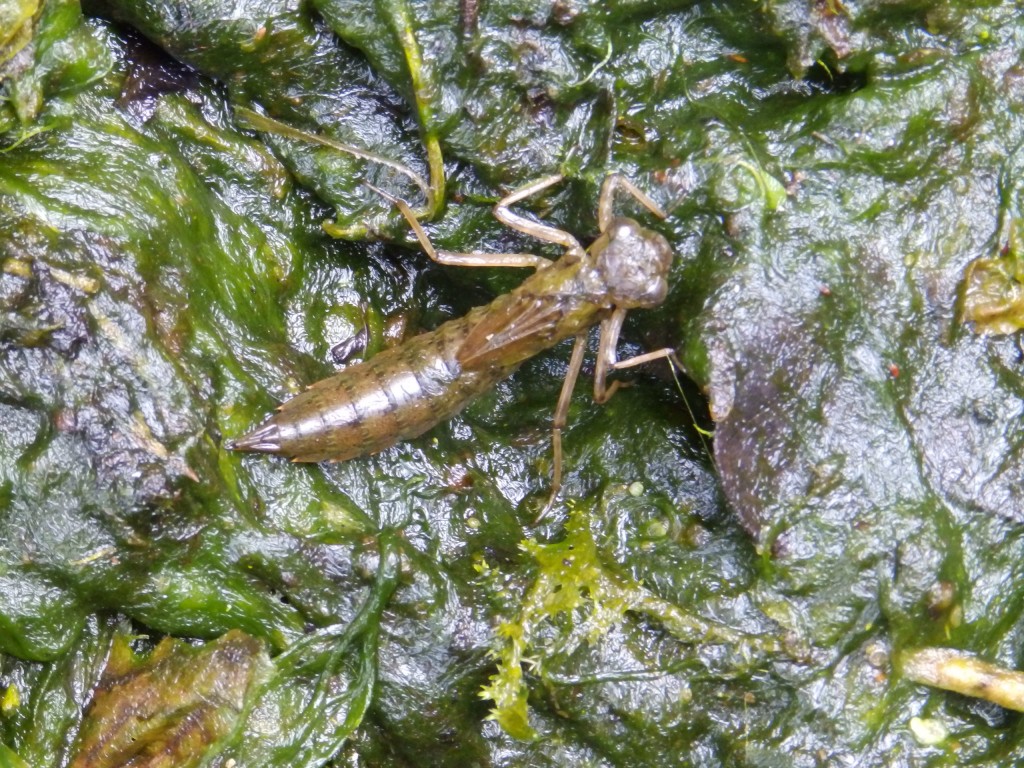 Het warme weer zorgt voor algvorming in de vijver. Het eruit halen van draadalg is vrij eenvoudig. Maar ik pluis de opgedregde alg altijd zorgvuldig uit, want er zitten vaak vijverdieren in verstrikt, die ik snel weer in het water terug doe. Zo zitten er vaak salamanders, waar mijn vijver rijk aan is, in de alg. Maar ook slakjes en libellenlarven. Zelfs deze laatste - echte rovers - gaan weer terug het water in. De salamander in het filmpje heeft het heft in eigen poot genomen en vindt zelf zijn weg uit de kruiwagen, naar het water.