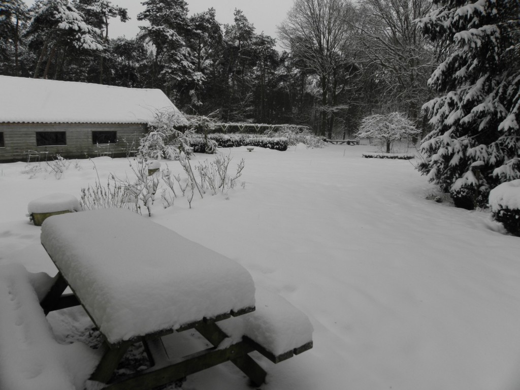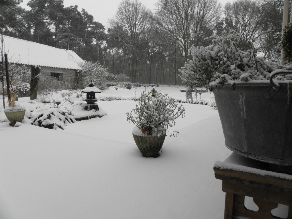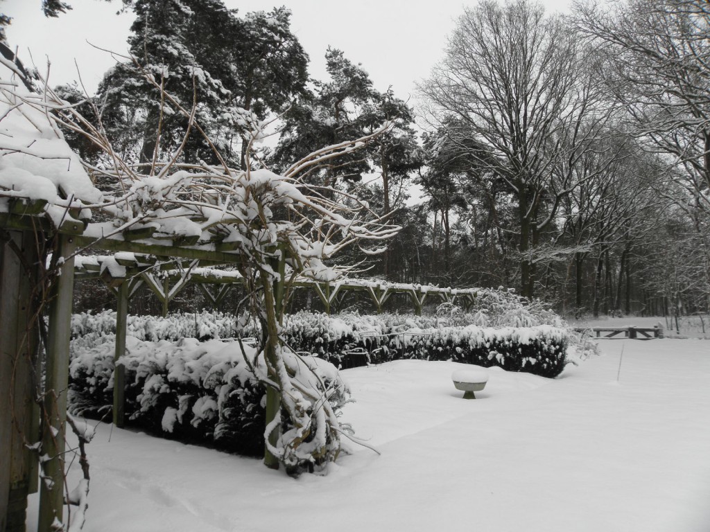De foto's hieronder geven een indruk van de witte wereld in de muze-tuin.