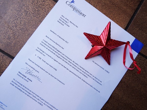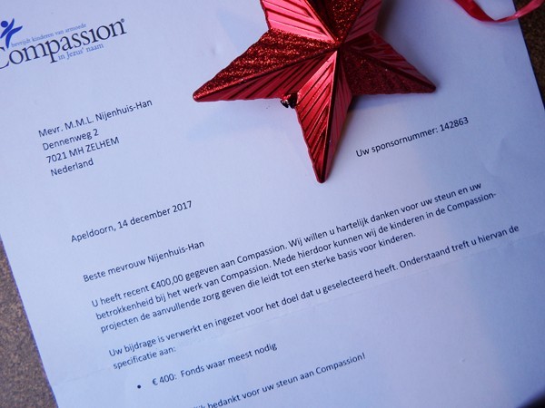 27-12-2017De tuinbezoeken van dit jaar brachten voor Compassion 400 euro op.