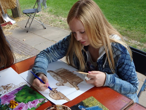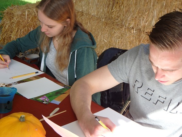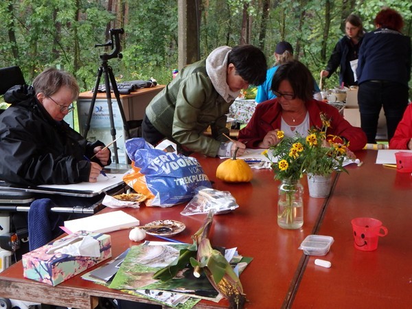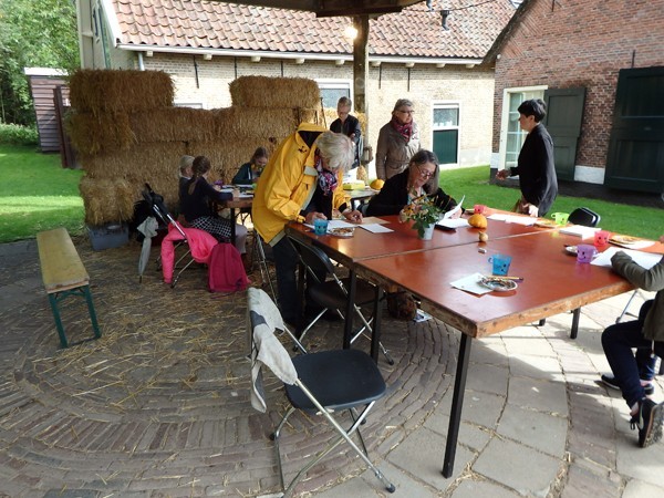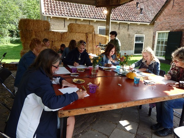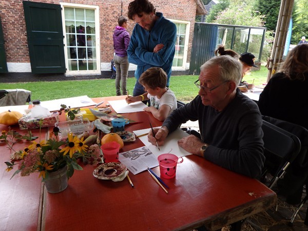 13-09-2017Herfstregens en zon, maar enthousiaste cursisten onder alle omstandigheden. Dat zijn mijn ervaringen van de Landlevendagen waar ik workshops gaf in tekenen met bister.