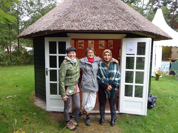 Dit jaar deelde ik de kapschuur waaronder ik les gaf met de Vogelbescherming. En gelukkig mocht ik weer het daarnaast gelegen theehuisje van Hoogmade als stand inrichten.
