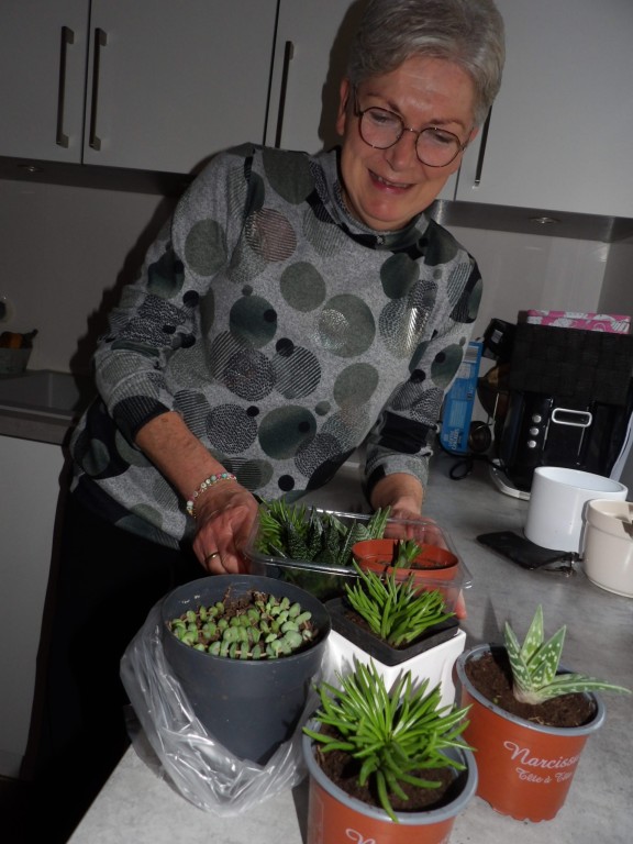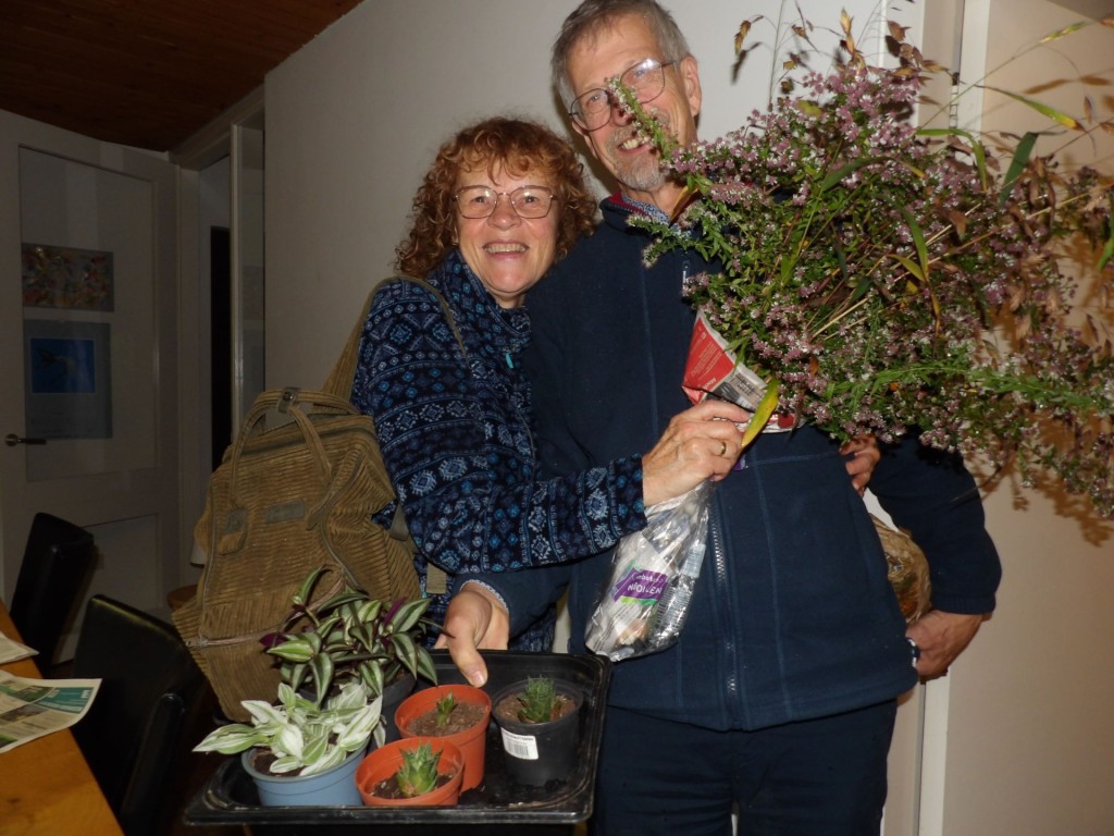 Echter, familie, vrienden en buurtjes werden uitgenodigd (en aangespoord) om stektjes of zelfs boeken bij de Tuinmuze uit te zoeken, tegen een vrijwillige gift voor Compassion. En dat deden ze! Aan de foto's te zien ook met veel plezier.
