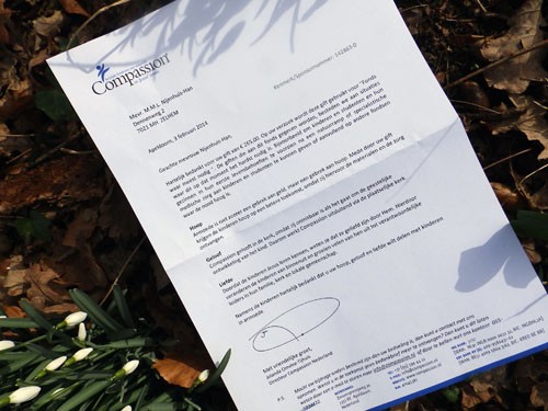 Compassion: "Bijvoorbeeld om kinderen en studenten en hun gezinnen in hun eerste levensbehoeften te voorzien na een natuurramp of specialistische medische zorg aan kinderen en studenten te kunen geven of aanvullend op andere fondsen waar de nood hoog is. Mede door uw gift krijgen de kinderen hoop op een betere toekomst."