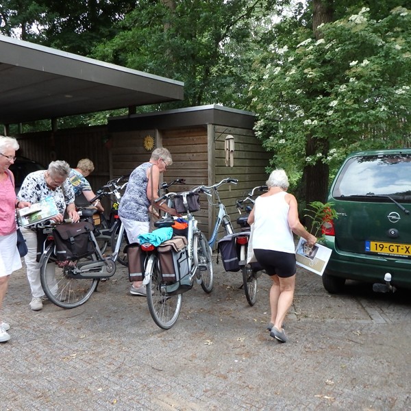 Het was een mooie dag op 15 juni, maar wel met een onweersvoorspelling. De dames van de tuinclub lieten zich niet afschrikken: ze kwamen op de fiets en het onweer bleef uit.