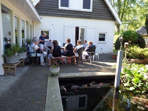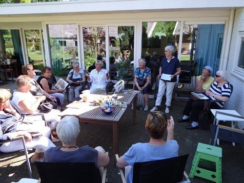 Het was een stralende dag met twaalf stralende en enthousiaste dames van tuinclub De Tuinluu uit Varsseveld. Aandachtig werd geluisterd naar mijn verhalen over tuinbelevenissen en het tekenwerk voor Landleven. Met veel belangstelling voor de diverse onderwerpen.