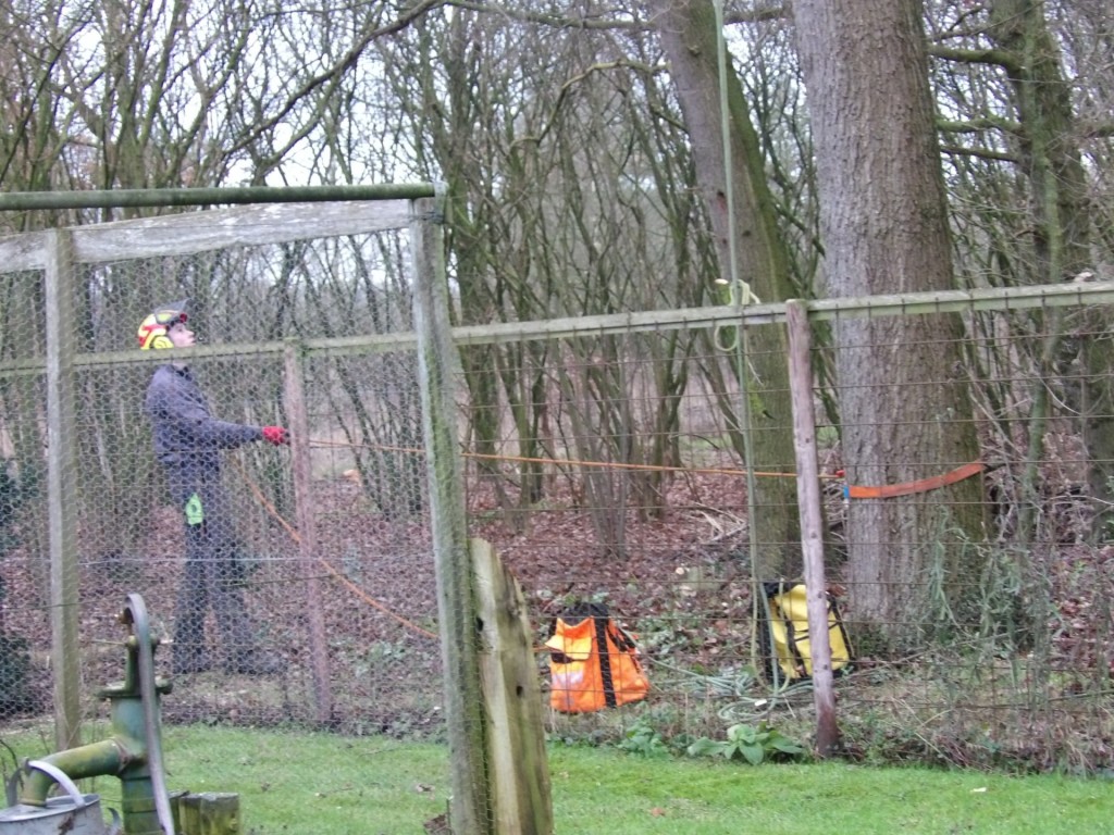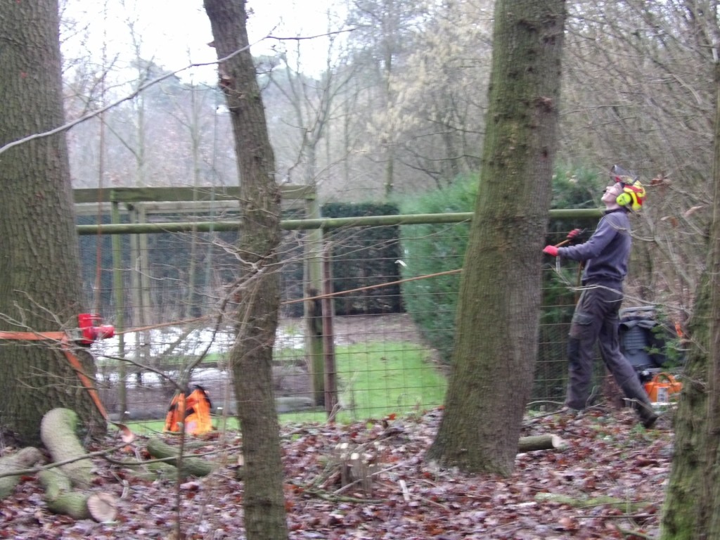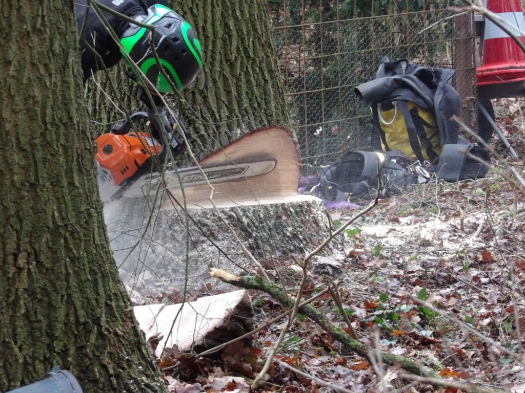 Een prima team, want de eik stond hooguit een meter naast mijn moestuinhek. Het hekwerk werd geen haar gekrenkt!