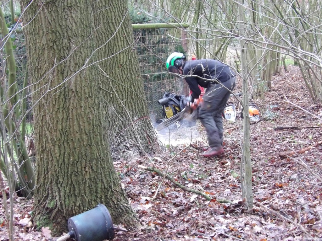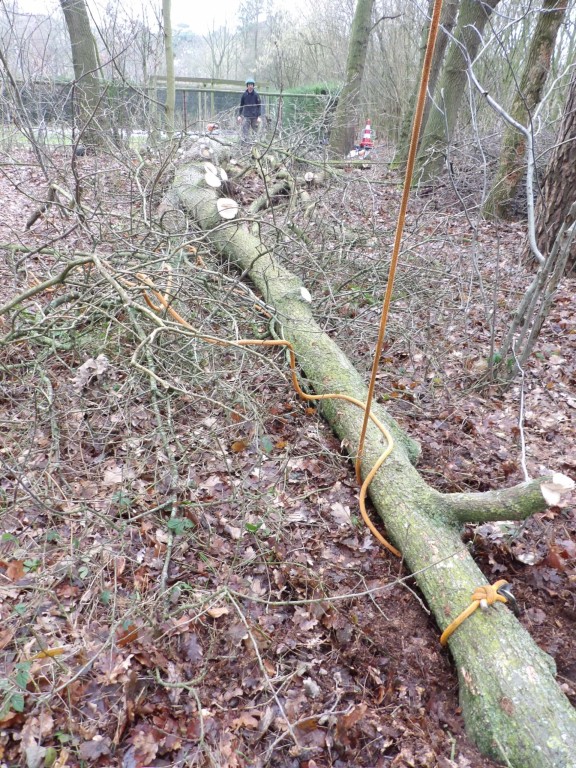 29-01-2023Een grote eik vlak naast de moestuin moest om. Een secuur werkje.