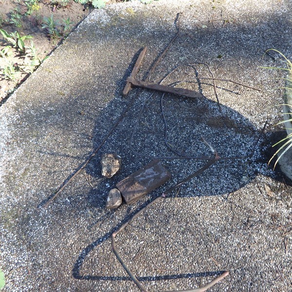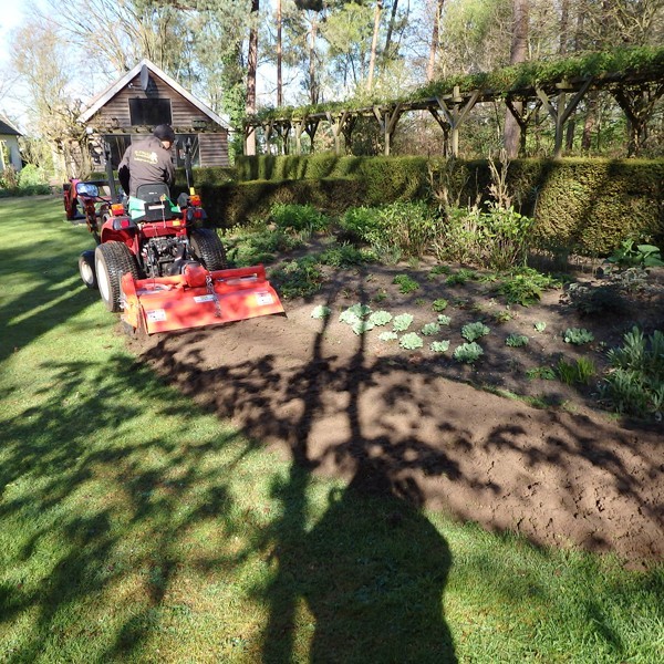 Vakkundig en efficiënt bewerkten ze met diverse machines de grond. Dat gebeurde met de nodige omzichtigheid, want daardoor kwam de erfenis van de vroegere bewoner bloot te liggen: puin, glasscherven en oud ijzer. De machines hebben het er gelukkig onbeschadigd van af gebracht.