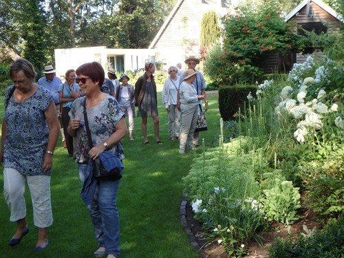 De Gelderse Rozen waren om negen uur 's morgens al present; allemaal even enthousiast en belangstellend. Na een rondleiding, versnapering en praatje ging het weer voort, naar de volgende tuin.