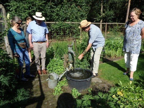24-07-2018Op 14 juli kwam de Velpse tuinclub 'De Gelderse Roos' in de Muzetuin. Velen waren getooid met hoed of pet, want het was behoorlijk warm.