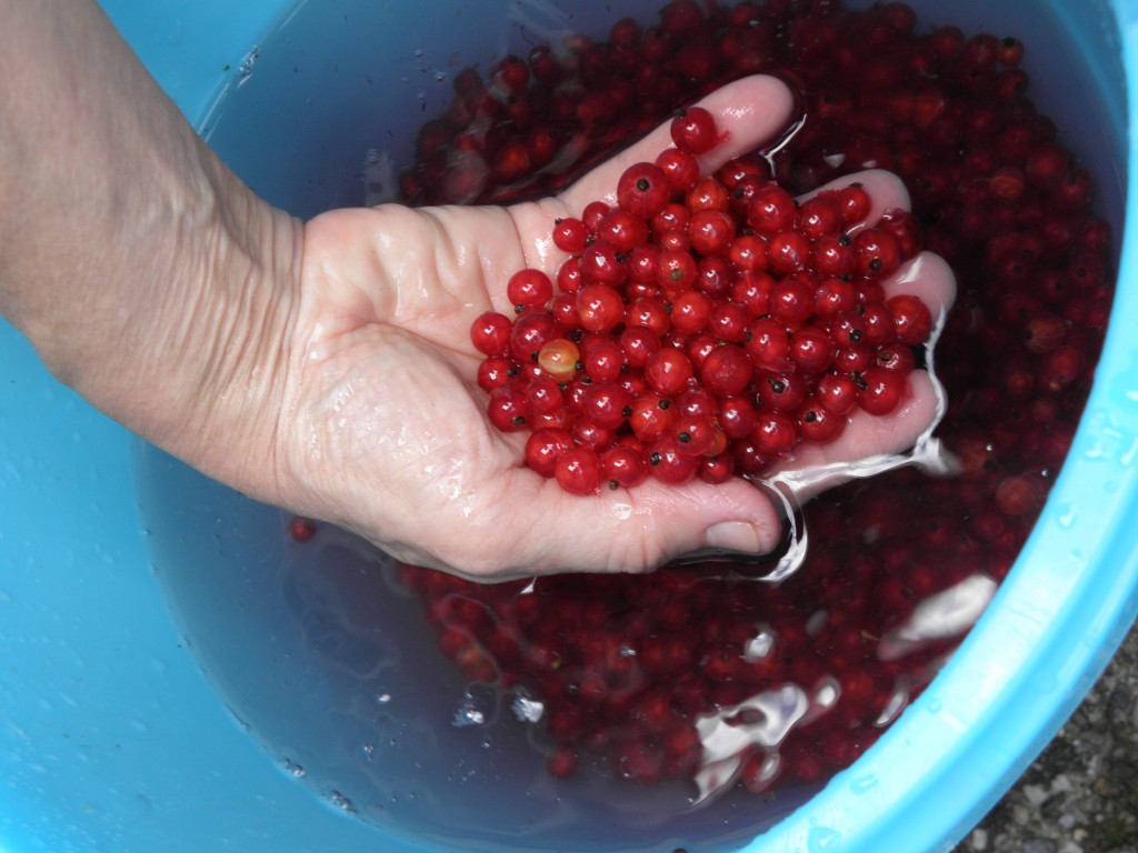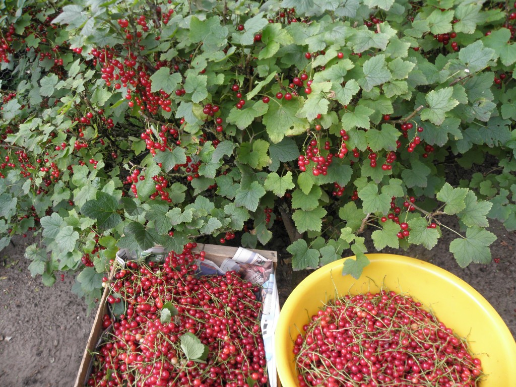 07-07-2012Wat rode bessen betreft, is het een tijd van overvloed. De takken van de struiken hangen krom van de zware last.