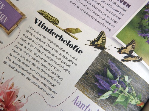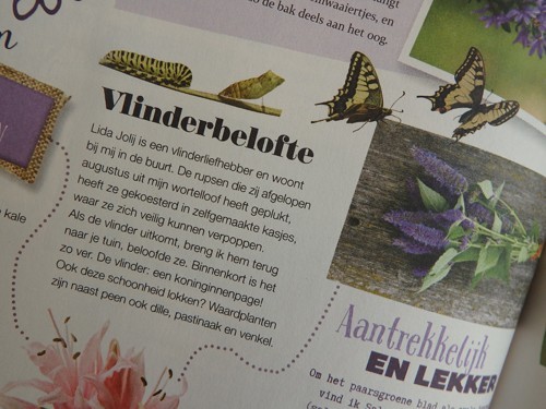 Een mooi artikel over Lida staat in het eerste nummer van dit jaar van Landleven. Ondertussen is zij druk met het ontwerp van een vlindertuin in Doetinchem. Haar eigen tuin is dan ook een paradijs voor vlinders. Daar wissel ik graag plantjes mee uit!