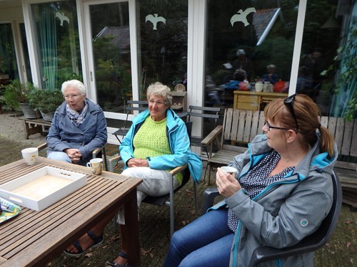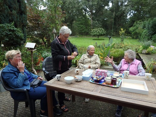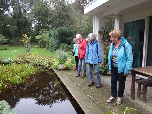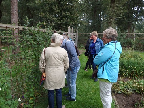 De Tuinfluiters uit Steenderen kwamen op 17 september: een zachte najaarsdag. Zacht genoeg om de pauze tussen de tuinrondleiding en het praatje over mijn werk in de buitenlucht te houden.