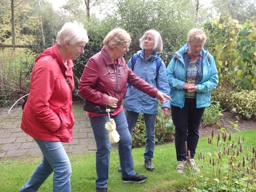 Dat was niet het geval op 26 september tijdens het bezoek van De Vrouwenmantel uit Dieren. Iedereen was erop gekleed; tuinmensen trotseren elk weertype. We eindigden in het atelier, lekker droog.