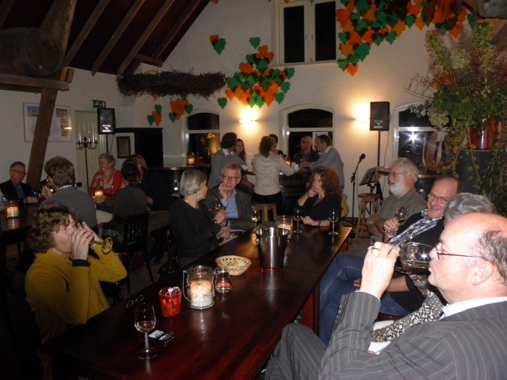 De bijeenkomst vond plaats bij Wijngoed Kranenburg op 22 oktober. De ambiance liet niets te wensen over. Het zachte - en vooral droge - weer zorgde er mede voor dat de avond niet meer stuk kon. In het maanlicht mochten de deelnemers een wandeling maken door de wijngaard. Eigenaar Henk Takken van Wijngoed Kranenburg vertelde ter plekke waaraan de omgeving en de planten moeten voldoen om goede wijndruiven te leveren.