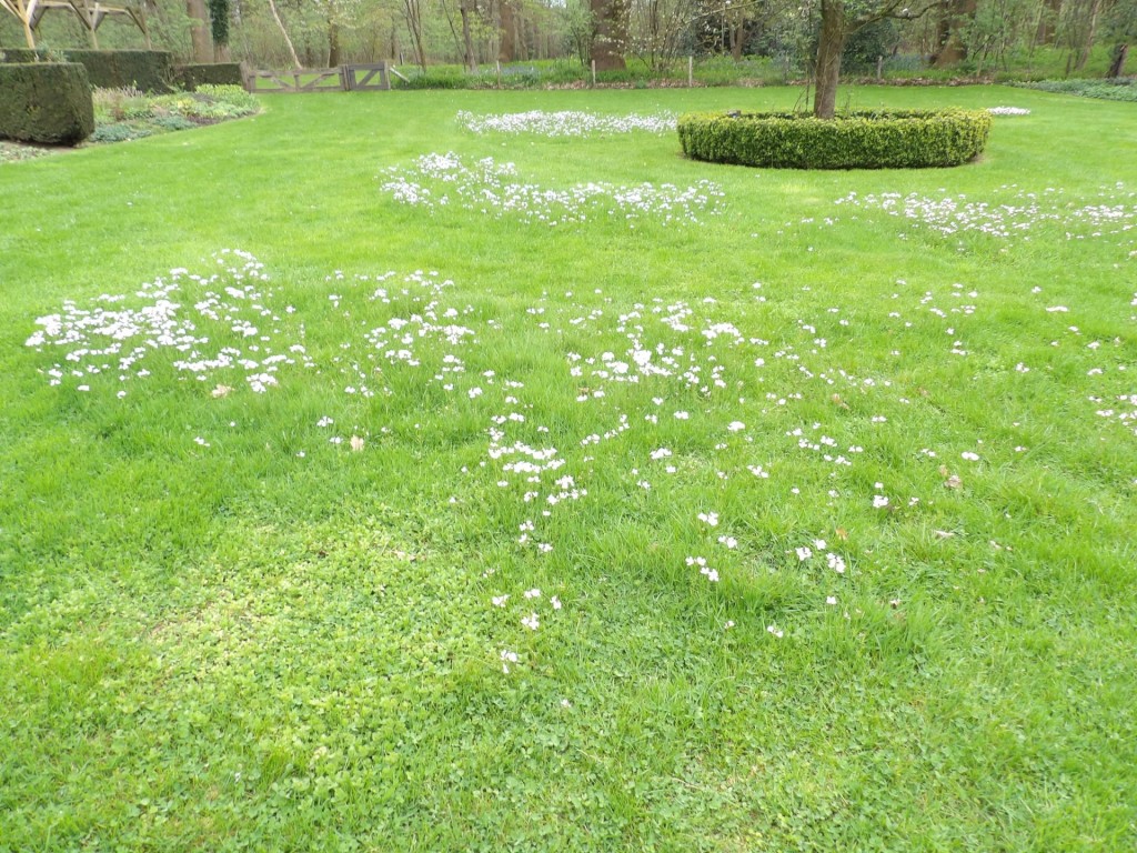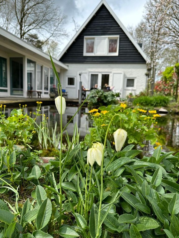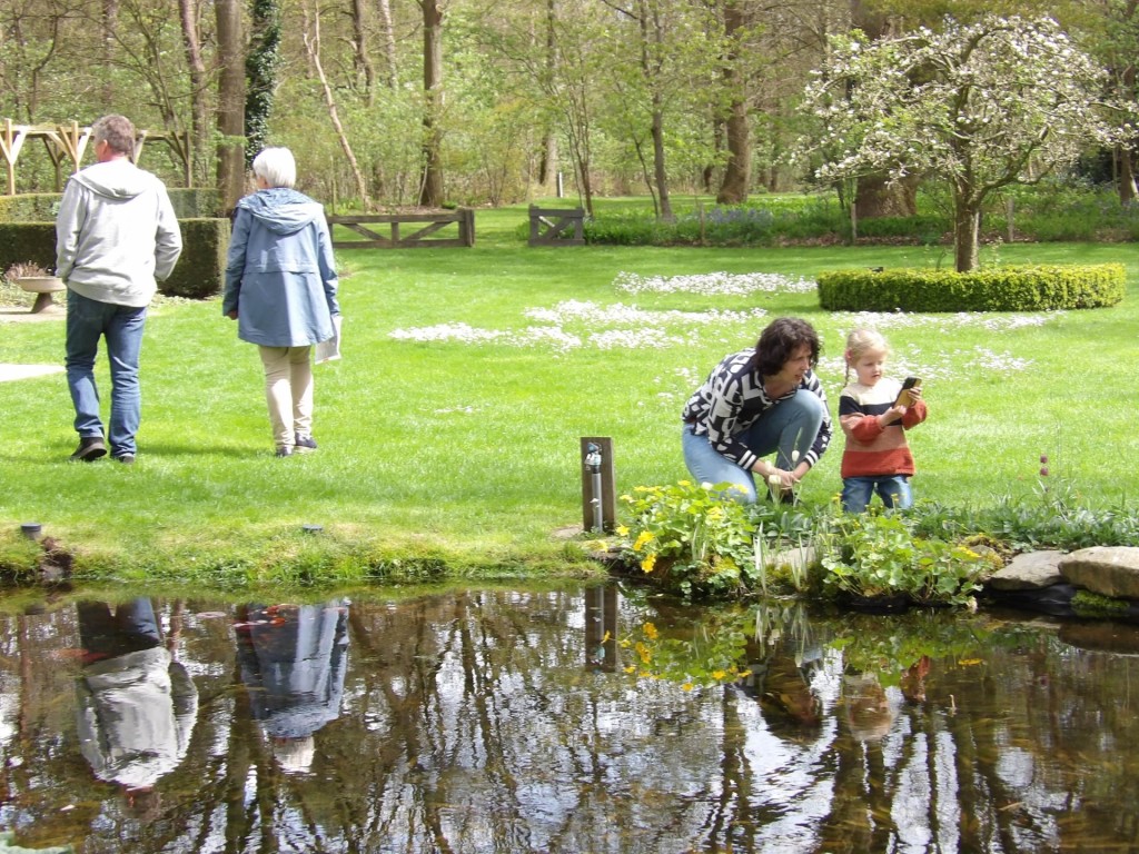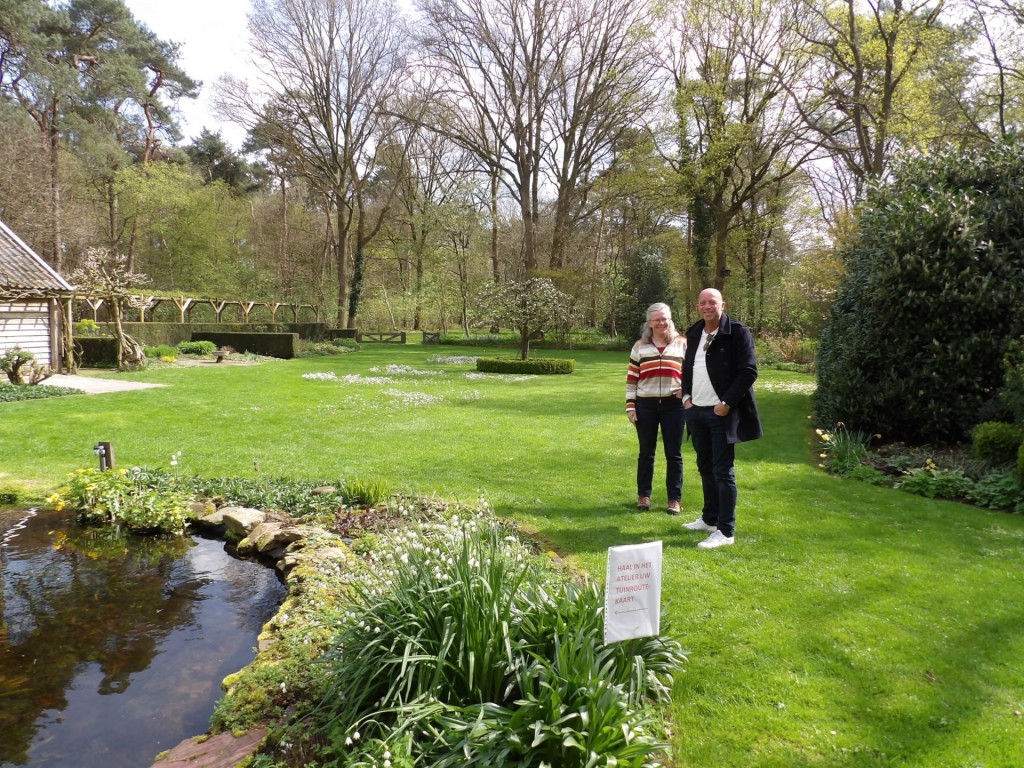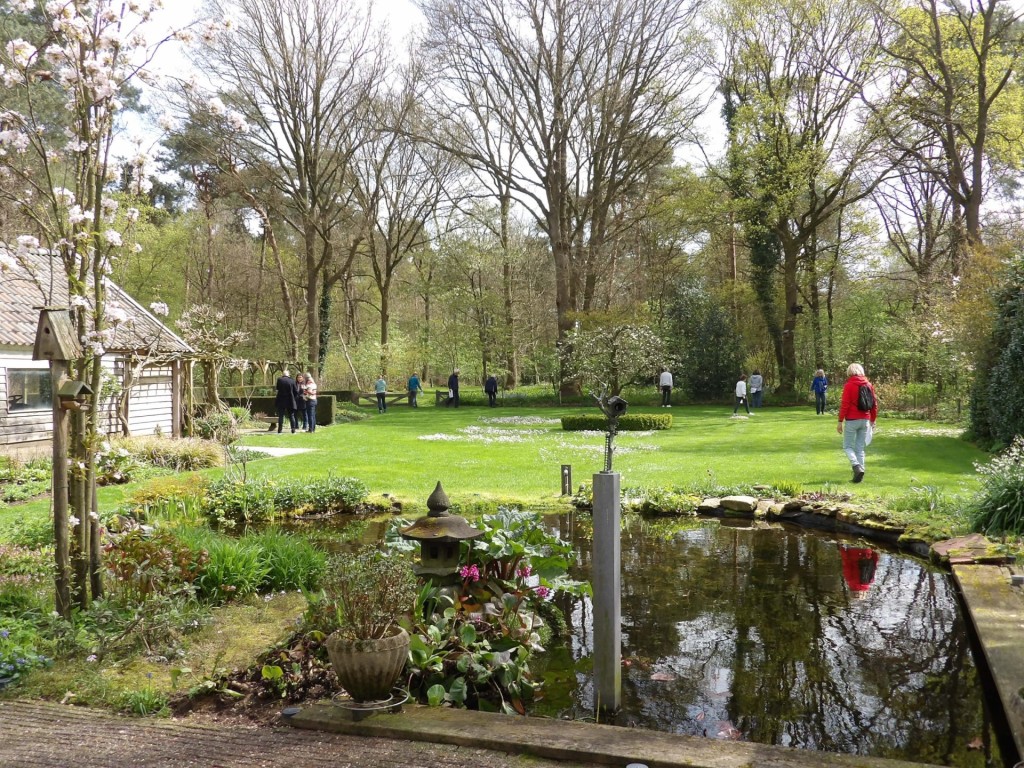 Tegelijk met de Muzetuin waren enkele andere particuliere tuinen op 23 april en 4 juni open voor bezoekers. In april ging het vooral om stinzenplanten, en die zijn er volop in de Muzetuin. Dan is het in het bos een feest van boshyacinten, judaspenning, daslook, gele dovenetel, late narcisjes, opkomende lelietjes van dalen, vingerhoedskruid en salomonszegel. In de borders en langs de vijver bloeien onder andere Uvularia grandiflora, dotterbloemen, zomerklokjes en kievitsbloemen. Jammie voor vlinders en vele andere insecten.