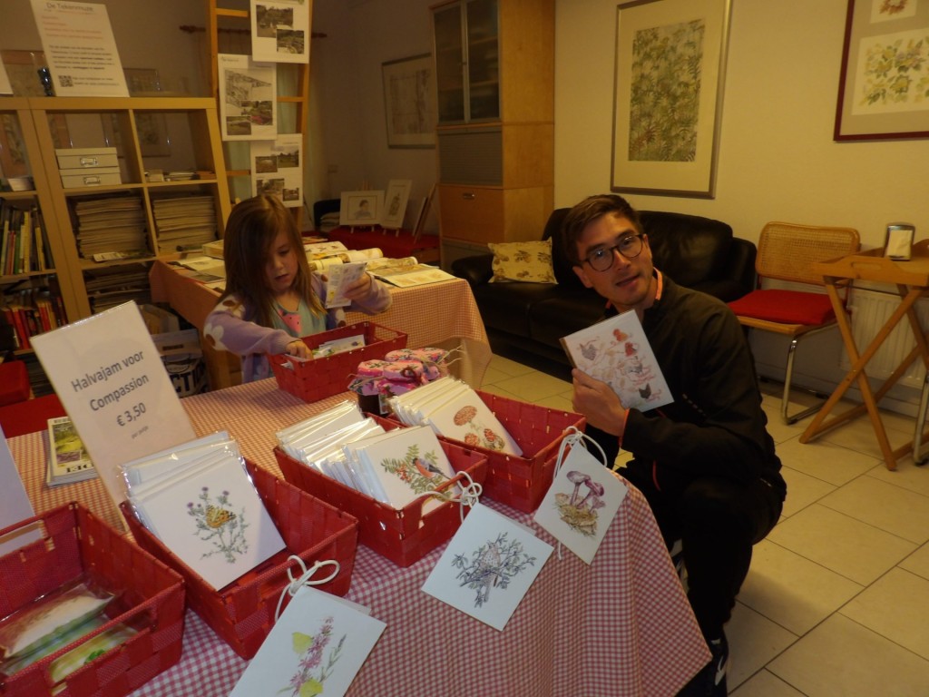 Het atelier was geopend, met naast de unieke kaarten en illustraties voor het blad Landleven van de Tuinmuze, ook zelfgemaakte (halva-)jam, waarvan de opbrengst voor Compassion is.