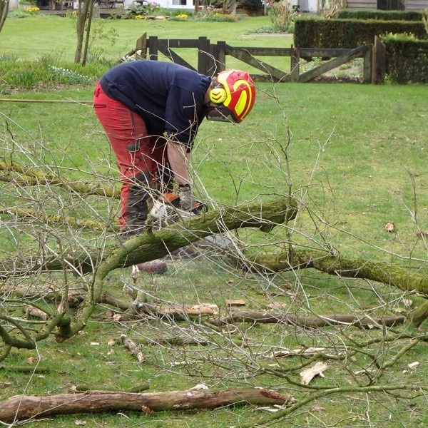 17-04-2017Storm en aangekoekte sneeuw op takken hadden diverse bomen in mijn kleine bos danig beschadigd. Sommige takken bungelden nog gevaarlijk aan enkele vezels, vele meters boven de grond. Tijdig ingrijpen was vereist.