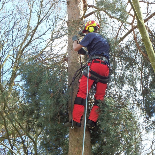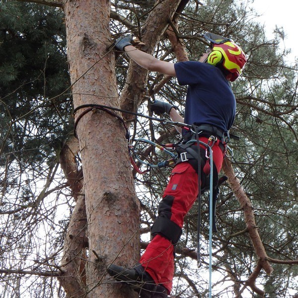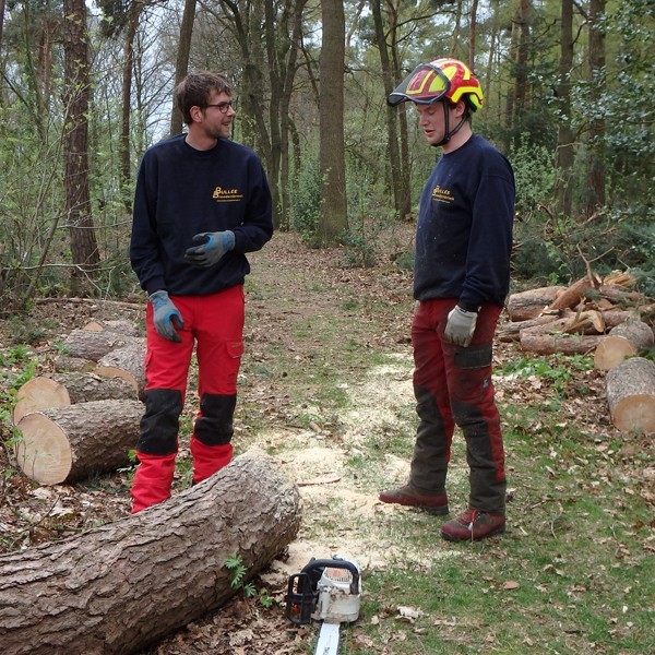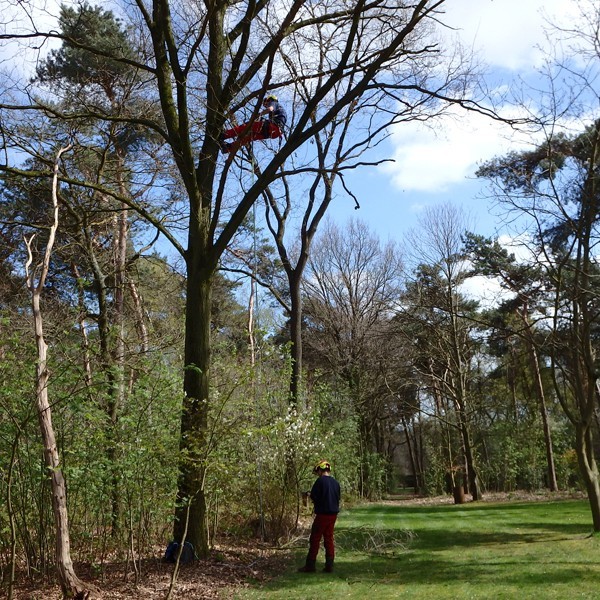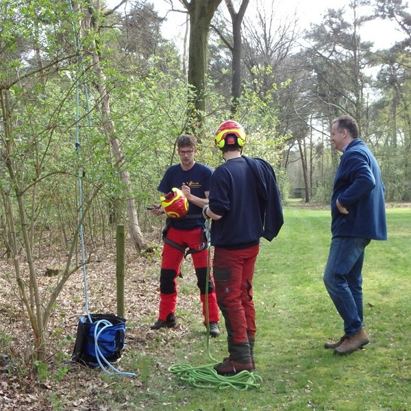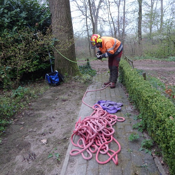 De jongens van Bullée Breedenbroek hielpen mij uit de brand. Half acht 's morgens stonden ze paraat voor een volle dag klimmen en zagen. Met bewondering heb ik naar de klimverrichtingen van Wilco gekeken. Concentratie, techniek en conditie, en dat de hele dag door. Leerling Freek zorgde op de grond voor het aangeven van de apparatuur, het touwwerk, en het doorzagen en opruimen van de gevallen takken.