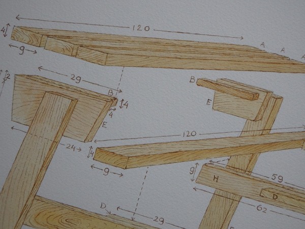 Daarna mocht ik de bank een poosje houden om er een bouwtekening van te maken; helaas werd de bank na afloop weer opgehaald.