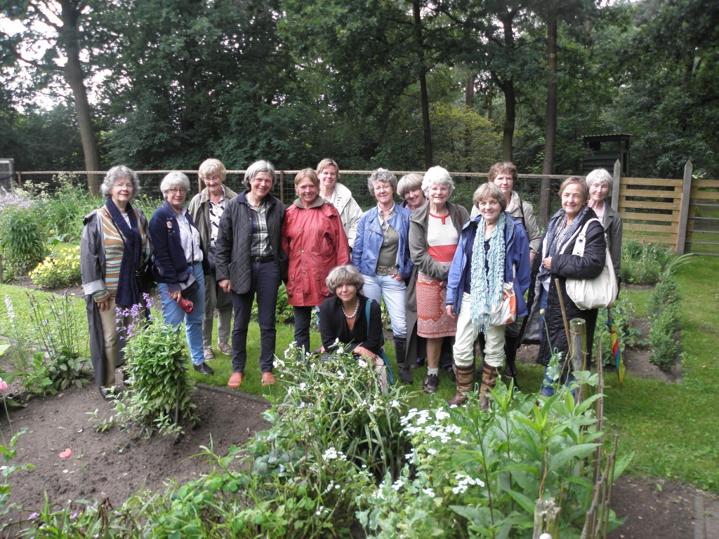 Tussen de buien door bekeek Tuinclub Diepenveen de tuin van De Tuinmuze. Het bleef even droog.