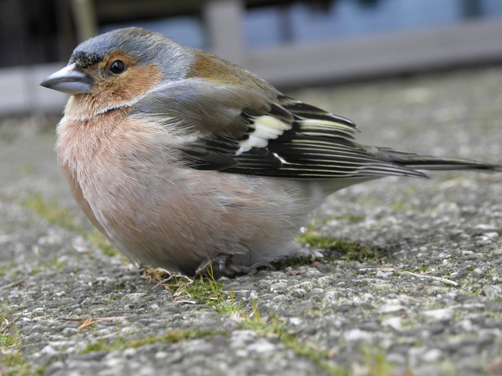Het voorjaarszonnetje is er om van te genieten. Dat vindt ook deze vink. Dat de fotograaf wel erg dichtbij komt is ook prima.
