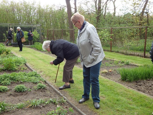 28-04-2016Eind april werd het weer bepaald door regen, hagel en natte sneeuw. Toen de dames van De Klimop in mijn tuin rondwandelden, scheen echter de zon!
