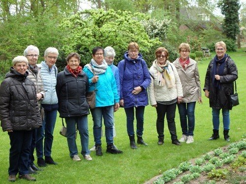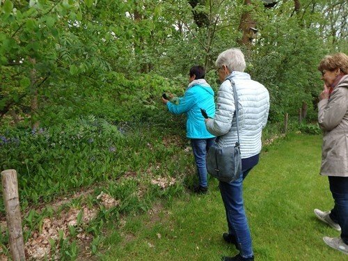 Deze gezellige groep, met veel enthousiasme en belangstelling, was op 25 april met tien dames een middag in de Muzetuin. Veel borderplanten waren nog niet in bloei, maar de stinzenplanten in het bos maakten veel goed.