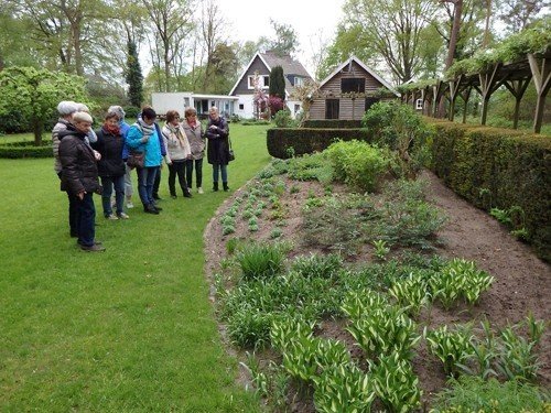 26-04-2018Tuinclub De Zonnehoed bezocht de Muzetuin. Zonnehoeden waren nog niet nodig; later brak zelfs aarzelend de zon door.
