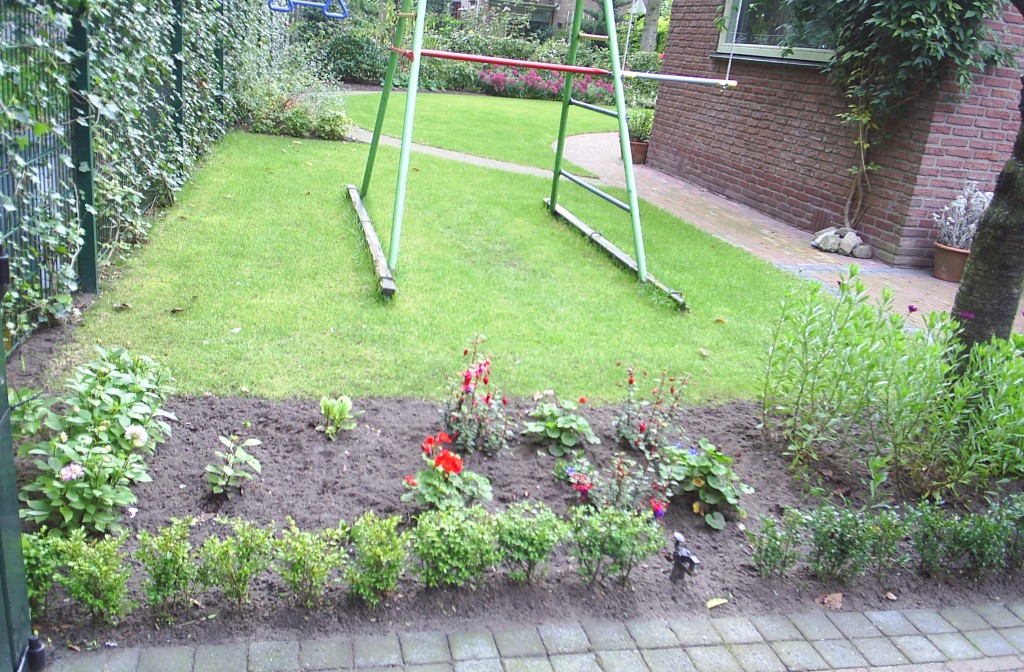 Speciaal voor dochter Nathalie is er een plekje ingeruimd, dat ze geheel naar eigen inzicht kan inrichten. Daar is ze nu al een paar jaar enthousiast mee bezig; zij tovert haar tuintje in het voorjaar om tot een mini-Keukenhof.