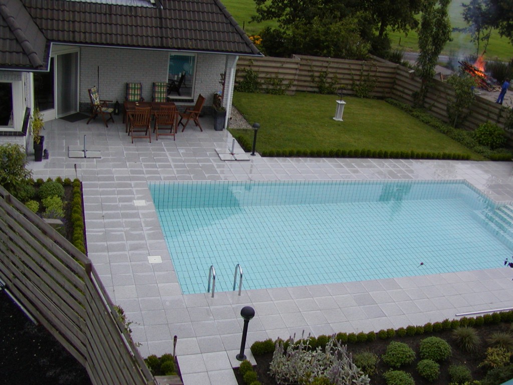 Aan de hand van het ontwerp hebben de eigenaars van deze tuin het zwembad eigenhandig aangelegd. Praktische beplanting rondom en een schutting om privacy te waarborgen maken het geheel af.